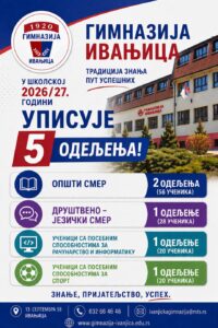 Gimnazija u Ivanjici upisuje pet odeljenja u školskoj 2026/27. godini
